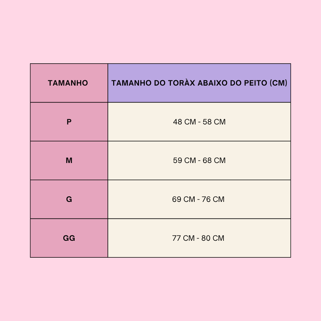 CONFIRA ABAIXO A TABELA DE MEDIDAS: